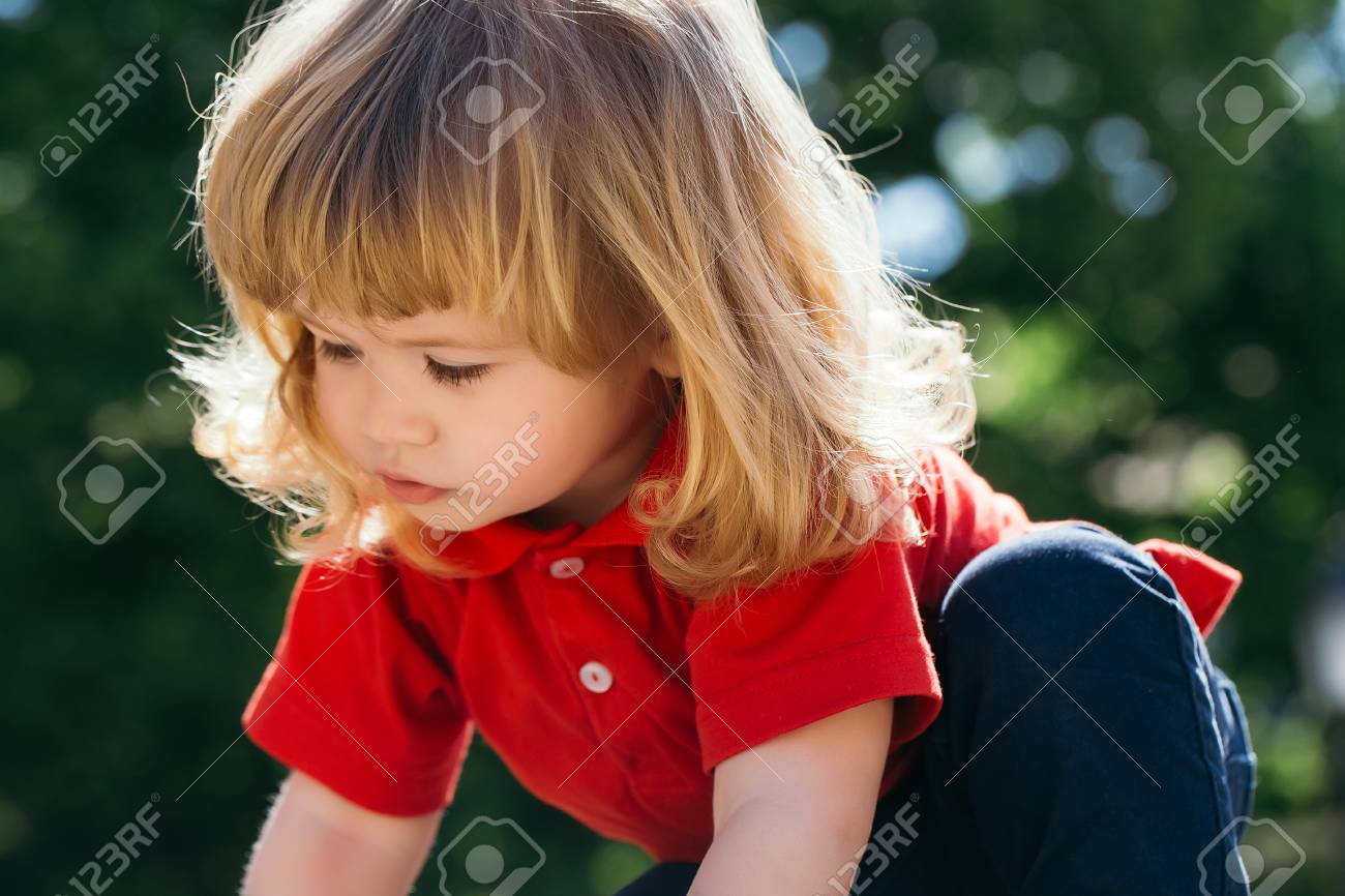 長い髪のかわいい男の子が何かに興味があります の写真素材 画像素材 Image